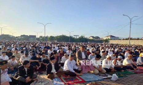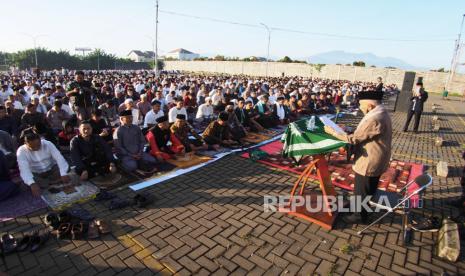 Bersama ribuan warga Muhammadiyah dan warga sekitar melaksanakan sholat id di lahan parkir Transmart Buah Batu, Bandung.
