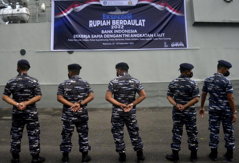 Anggota TNI Angkatan Laut bersiap naik ke atas kapal untuk melaksanankan ekspedisi Rupiah Berdaulat (ilustrasi). Bank Indonesia (BI) Perwakilan Provinsi Papua Barat bersama TNI Angkatan Laut siap menggelar Ekspedisi Rupiah Berdaulat 2023 yang menyasar daerah 3T di Papua Barat dan Papua Barat Daya.
