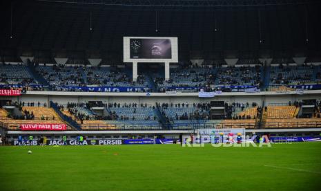 Suasana tribun Utara Stadion GBLA Bandung sebelum ditinggalkan bobotoh pada paruh babak pertama, Ahad (2/6/2023). (FOTO : Republika/yogiardhi)