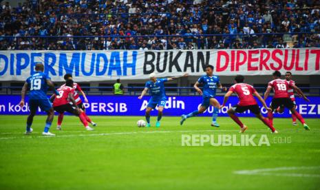 Spanduk panjang dipasang di sisi tribun timur Stadion GBLA pada laga BRI Liga 1 Indonesia antara Persib Bandung melawan Madura United di Stadion GBLA, Bandung, Ahad (2/6/2023). (FOTO : Yogi Ardhi)