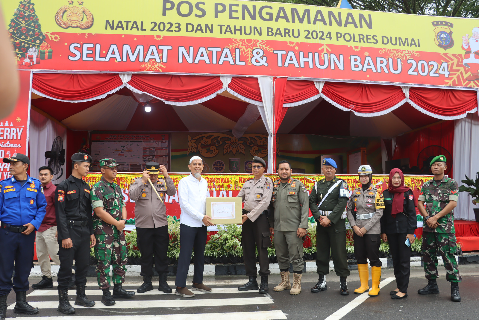 Dalam pelaksanaan pengecekan Pos Pengamanan Natal 2023 dan Tahun Baru 2024 (Nataru), Walikota Dumai bersama unsur Forkopimda juga memberikan bingkisan berupa makanan dan minuman untuk personel yang sedang bertugas.