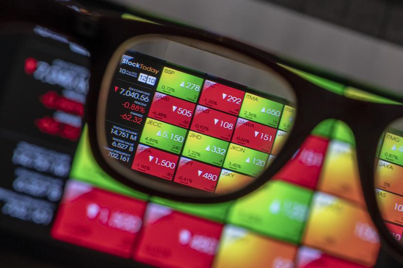 Karyawan melihat pergerakan Indeks Harga Saham Gabungan (IHSG) di Bursa Efek Indonesia, Jakarta, Rabu (10/8/2022). IHSG menguat tipis 0,02 persen ke level 6.844,93 setelah sempat dibuka melemah di awal perdagangan.