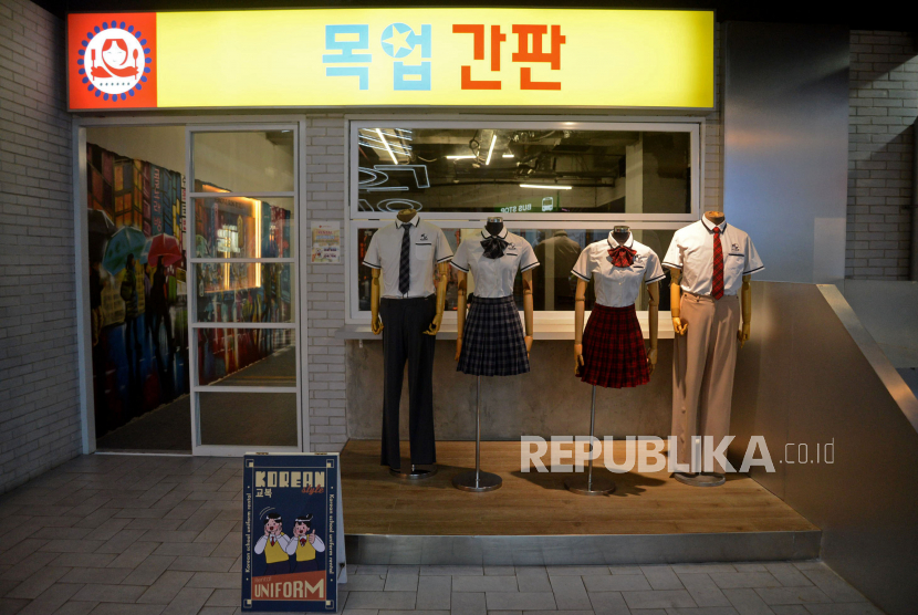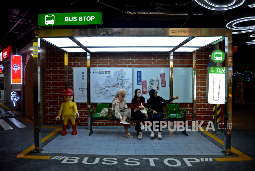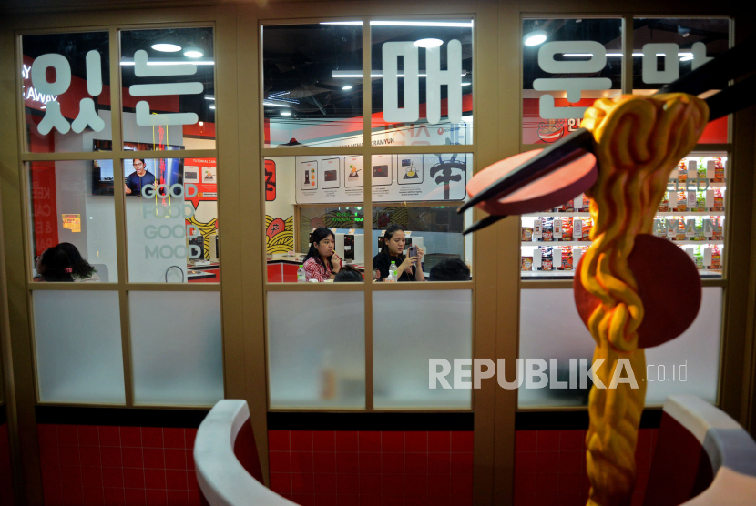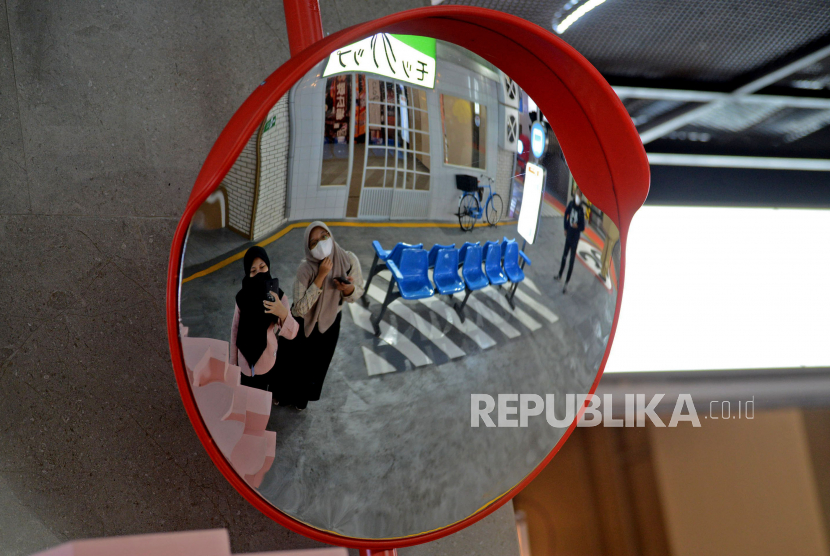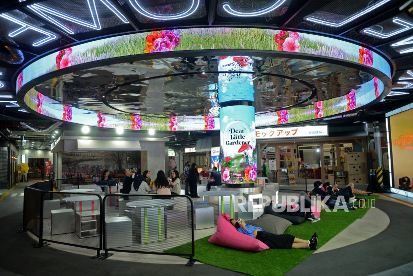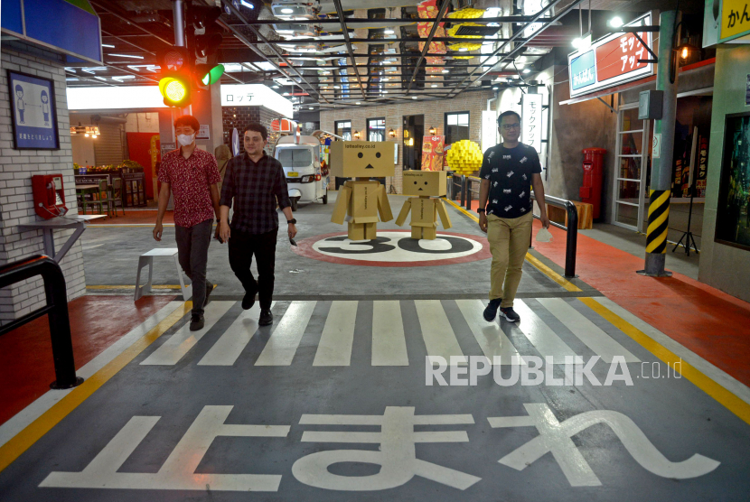 Pengunjung mengunjungi Lotte Alley di pusat perbelanjaan Lotte Shopping Avenue, Kuningan, Jakarta, Rabu (31/5/2023). Lotte Alley adalah tempat kuliner, hiburan, serta gaya hidup berkonsep Korea dan Jepang yang didesign dengan nuansa yang penuh warna. (FOTO : Republika/Prayogi)