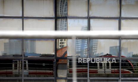 Rangkaian gerbong LRT Jabodebek bersiap memasuki stasiun Dukuh Atas, Jakarta, Rabu (12/7/2023). LRT Jabodebek mulai melakukan diuji coba secara terbatas pada hari ini yaitu 12 Juli hingga 15 Agustus. Uji coba secara terbatas ini akan dilakukan secara bertahap. Tahap pertama 12 Juli sampai 26 Juli yang mengikuti uji coba adalah undangan terbatas dari kementerian/lembaga, jurnalis/media, dan komunitas. Tahap kedua mulai 27 Juli 2023 sampai 15 Agustus 2023 adalah untuk masyarakat umum yang sudah mengisi link pendaftaran. Uji coba ini bagian dari serangkaian pengujian kesiapan sarana, prasarana, dan sumber daya manusia sebelum sistem angkutan umum perkotaan berbasis rel itu diresmikan Presiden Joko Widodo pada 18 Agustus 2023. (FOTO : Republika/Prayogi)