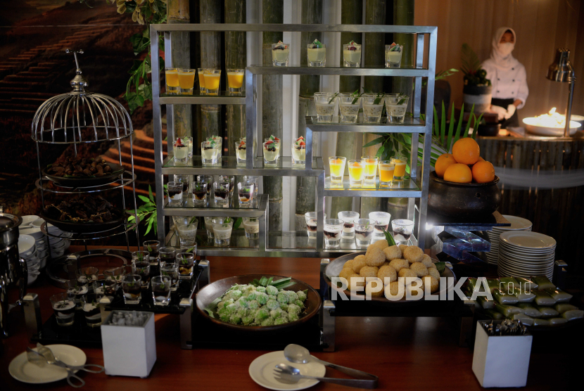 Hidangan kudapan yang disediakan pada QUBA Ramadan Pop Up Resto di Tribrata Darmawangsa, Jakarta, Senin (20/3/2023). (FOTO : Republika/Putra M. Akbar)