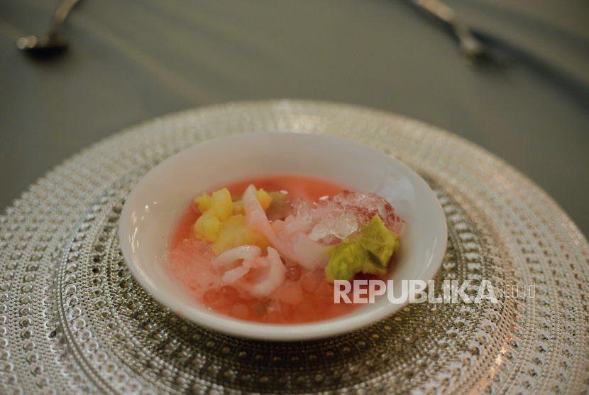 Salah satu hidangan yang disediakan pada QUBA Ramadan Pop Up Resto di Tribrata Darmawangsa, Jakarta, Senin (20/3/2023). (FOTO : Republika/Putra M. Akbar)