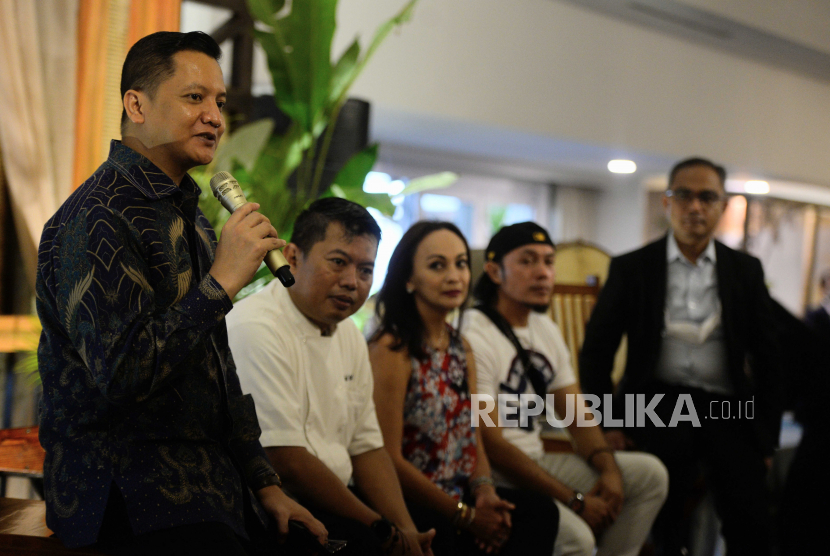 LalangBuana,  JAKARTA  —  General Manager Tribrata Ferry Irawan bersama Chef Tribrata dan Quba Syaiful, Public Figure Gladys Suwandhi dan Chef Muto menyampaikan konferensi pers di Tribrata Darmawangsa, Jakarta, Senin (20/3/2023).