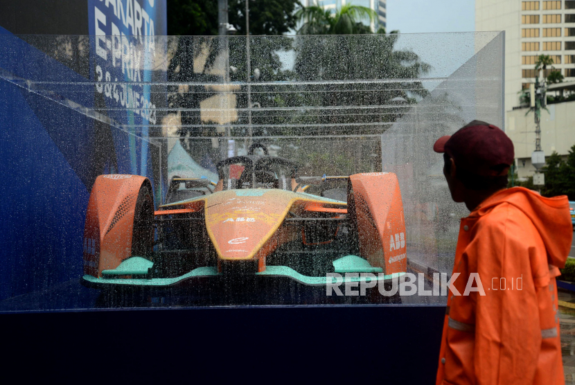 Replika mobil Formula E tersebut dipajang sebagai promosi menjelang pelaksanaan balap formula E di Jakarta pada 3 dan 4 Juni 2023 mendatang.