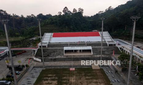 LalangBuana,SANGGAU — Foto udara pasar entikong yang berada di Jalan Lintas Malindo, Kabupaten Sanggau, Kalimantan Barat, Ahad (13/8/2023).