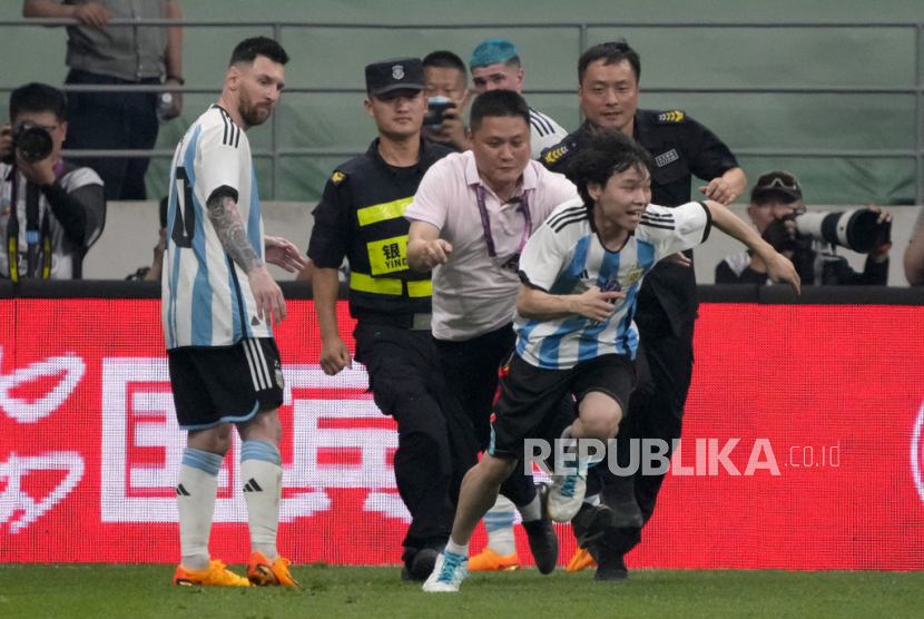 Hukuman tersebut dikenakan terhadap pria berusia 18 tahun bermarga Di karena masuk ke lapangan untuk memeluk Messi saat pertandingan antara Argentina melawan Australia masih berlangsung di Worker’s Stadium, Beijing, Kamis (15/6/2023) malam.