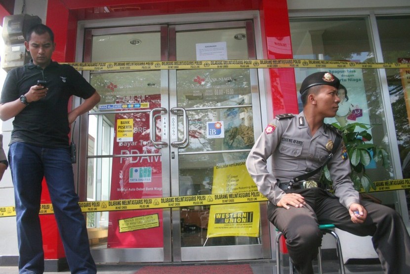 Satu pelaku bernama Heri Gunawan terjebak di dalam bank berhasil ditangkap, dan sempat dikeroyok pegawai bank. Pelaku bermotor melarikan diri. Para pelaku diduga menggunalan senjata air sofgun jenis revolver dan pistol glock.