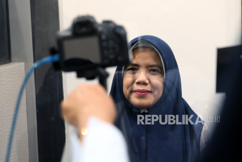 LalangBuana,BLITAR — Petugas merekam data Jamaah Calon Haji (JCH) di Kantor Imigrasi Kelas II Non TPI Blitar, Jawa Timur, Selasa (7/3/2023).