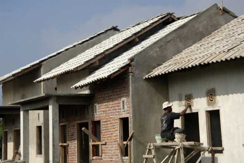 Pekerja menyelesaikan pembangunan sebuah proyek perumahan (ilustrasi). Real Estate Indonesia (REI) optimistis penjualan rumah komersial di Solo Raya pada 2023 meningkat dibandingkan tahun lalu.