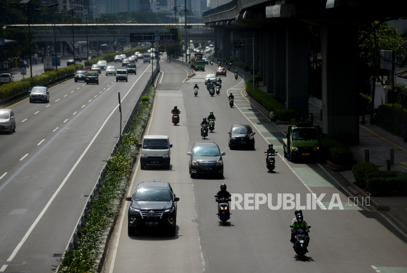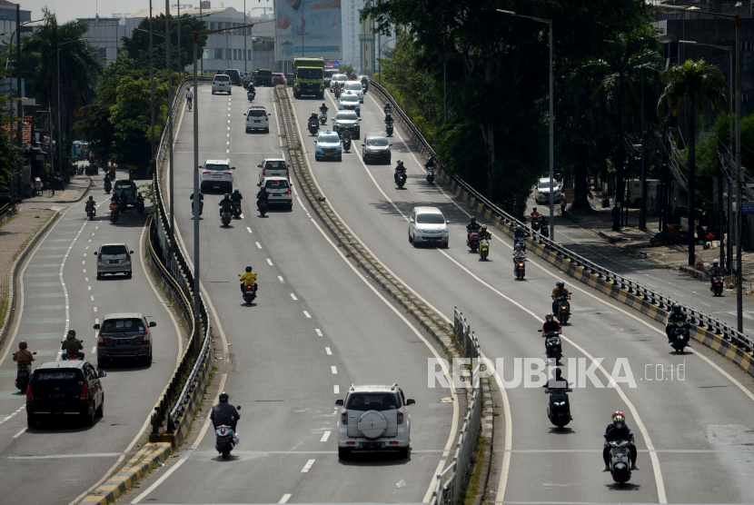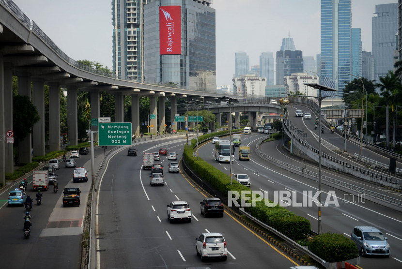 Kendaraan melintasi di Jalan Gatot Subroto, Jakarta, Kamis (23/3/2023). Pada hari pertama puasa/ramadan sejumlah jalanan ibu kota terlihat lengang hal ini karena sebagian perkantroan menerapkan cuti bersama hari raya Nyepi. Ditlantas Polda Metro Jaya memprediksi kemacetan di Ibu Kota Jakarta terjadi lebih awal di pagi dan sore hari pada pekan pertama Ramadan 1444 H. (FOTO : Republika/Prayogi.)