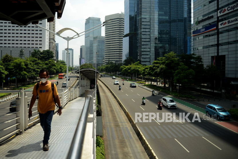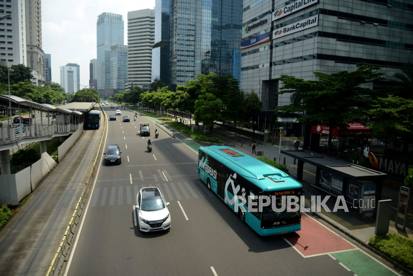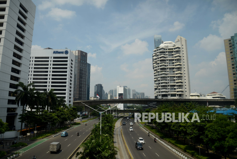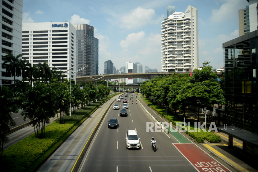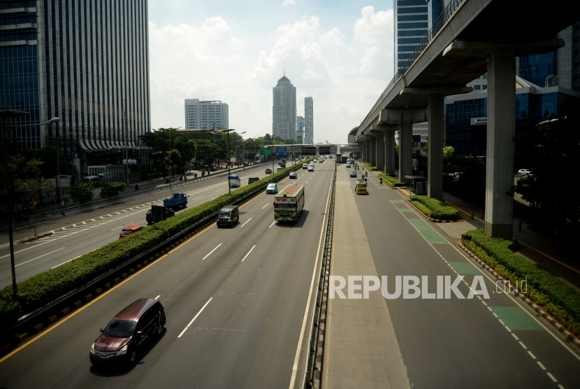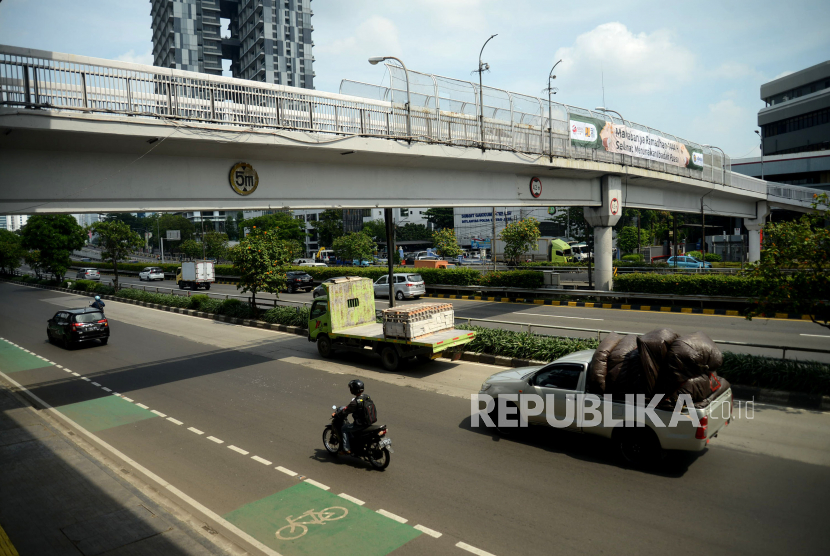 Kendaraan melintasi di Jalan Jenderal Sudirman, Kamis (23/3/2023). Pada hari pertama puasa/ramadan sejumlah jalanan ibu kota terlihat lengang hal ini karena sebagian perkantroan menerapkan cuti bersama hari raya Nyepi. Ditlantas Polda Metro Jaya memprediksi kemacetan di Ibu Kota Jakarta terjadi lebih awal di pagi dan sore hari pada pekan pertama Ramadan 1444 H. (FOTO : Republika/Prayogi.)