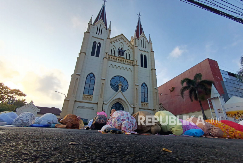 Warga Katolik Gereja Paroki Hati Kudus Yesus Kayutangan, Kota Malang menyediakan halaman sebagai tempat agar…