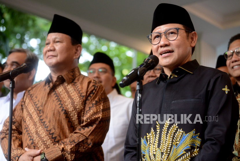 Ketua Umum Partai Gerindra Prabowo Subianto bersama Ketua Umum PKB Muhaimin Iskandar didampingi sejumlah pimpinan…
