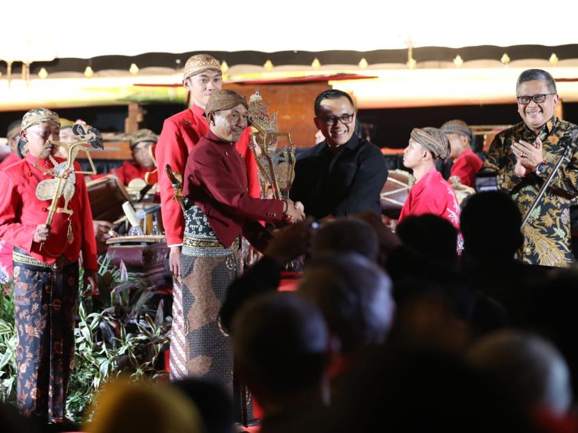 DPP PDI Perjuangan (PDIP) menggelar wayang kulit dalang 3 di halaman masjid At-Taufiq, Lenteng Agung,…