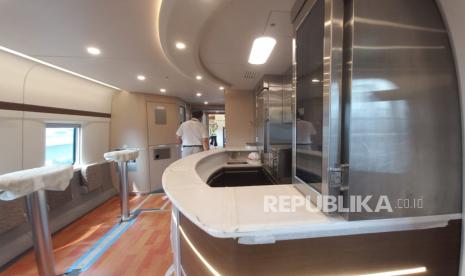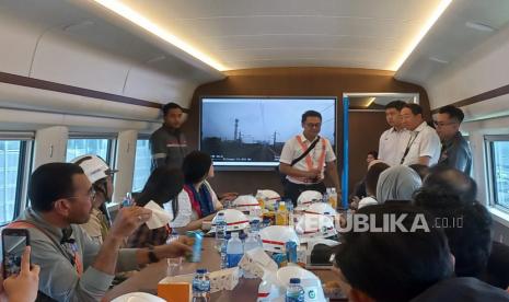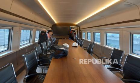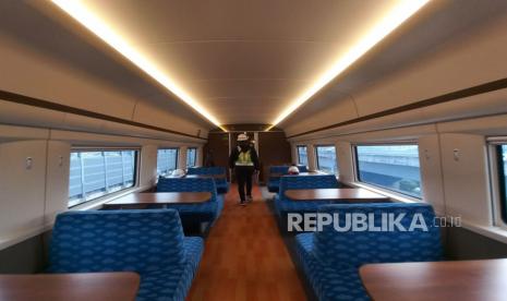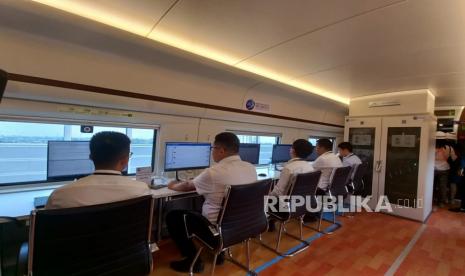 Fasilitas kereta cepat Jakarta-Bandung saat menjalani uji coba dari DK13 Batching Plant Tangga Darurat-Tegalluar, Bandung, Jawa Barat, Ahad (25/6/2023). (FOTO : Republika/Muhammad Nursyamsi)