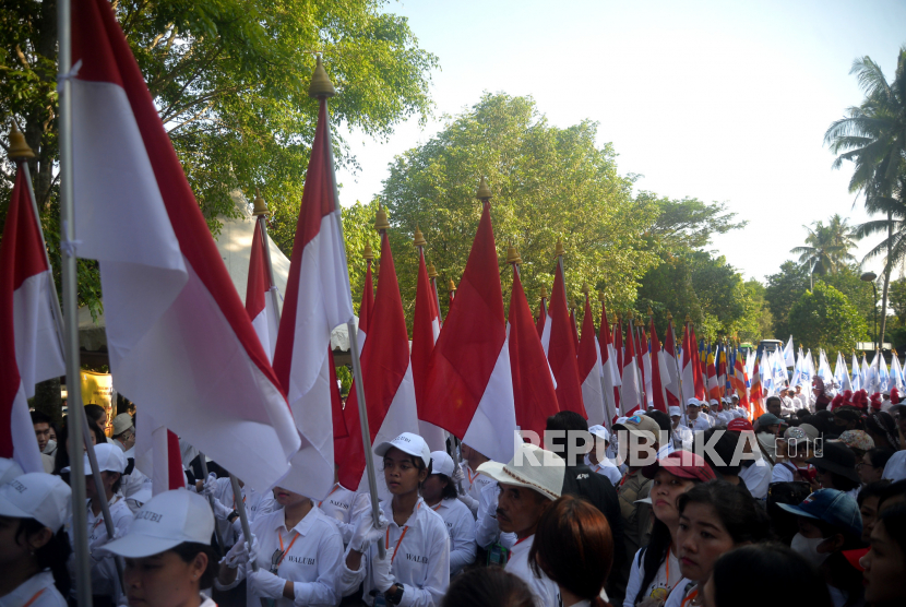 Peserta kirab antre memasuki tempat acara perayaan Waisak 2567 BE di Candi Borobudur, Magelang, Jawa Tengah, Ahad (4/6/2023). (FOTO : Republika/Wihdan Hidayat)